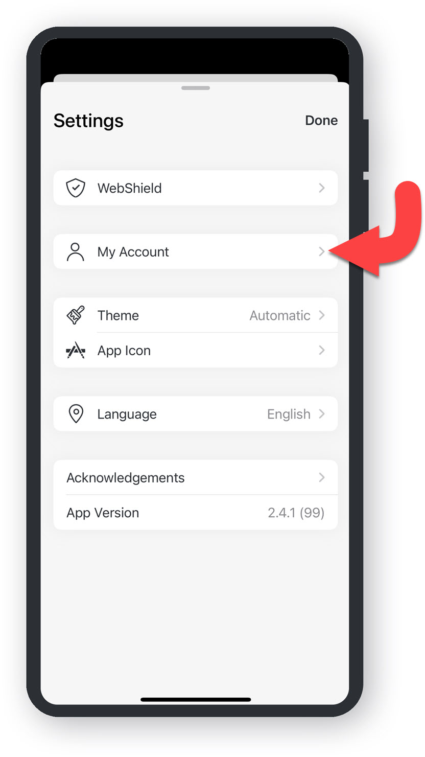 Ga naar de linkeronderhoek van de applicatie en klik op het pictogram Mijn account.